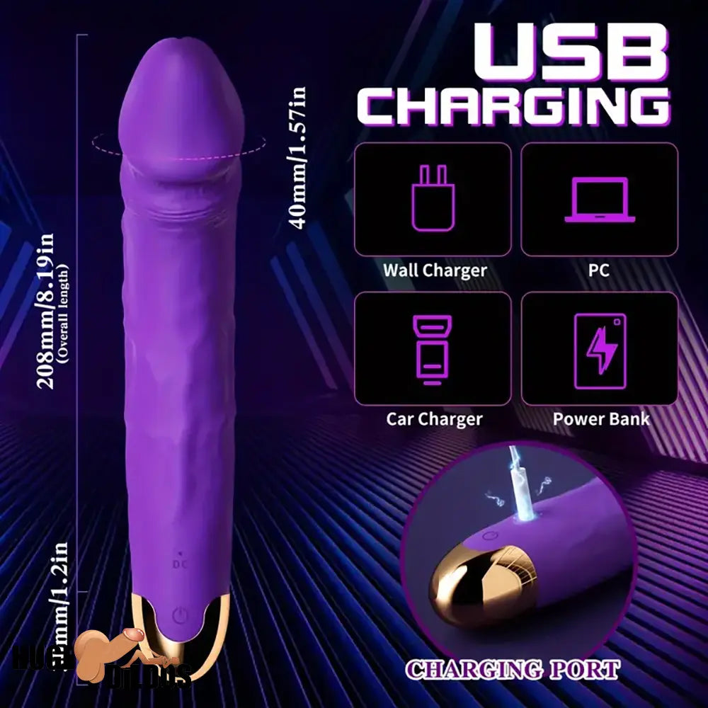 8.19in Big Vibrating Rotation Auto Dildo BDSM Sex Toy For G Spot Orgasm