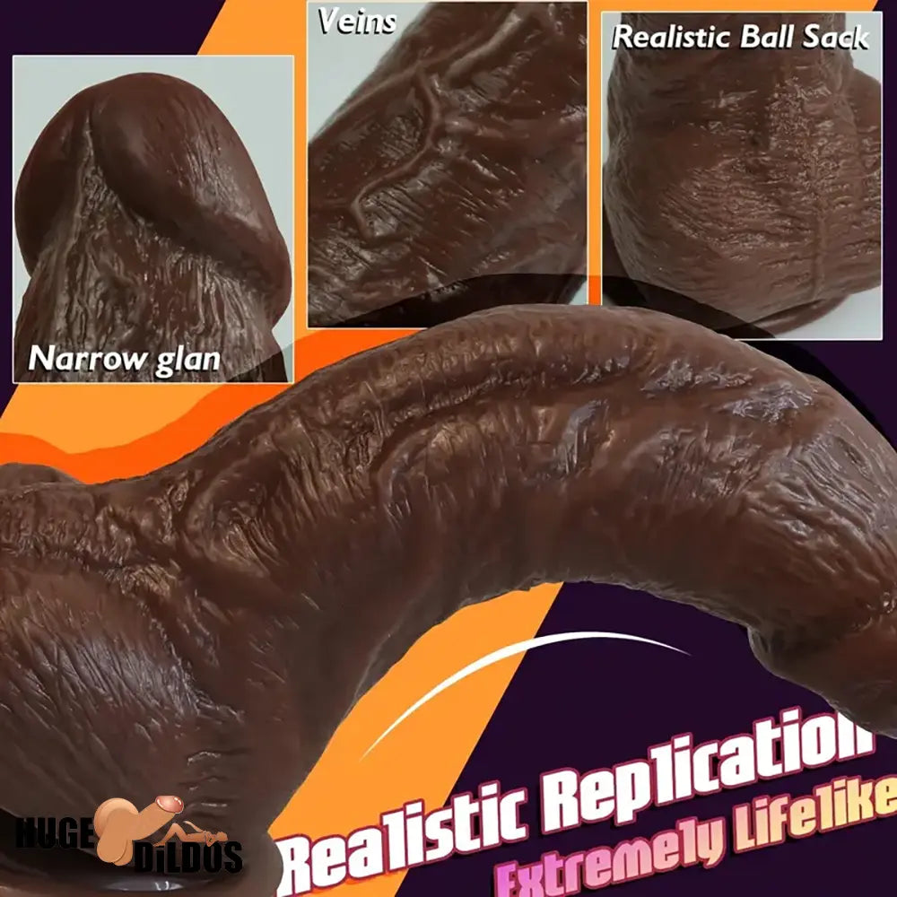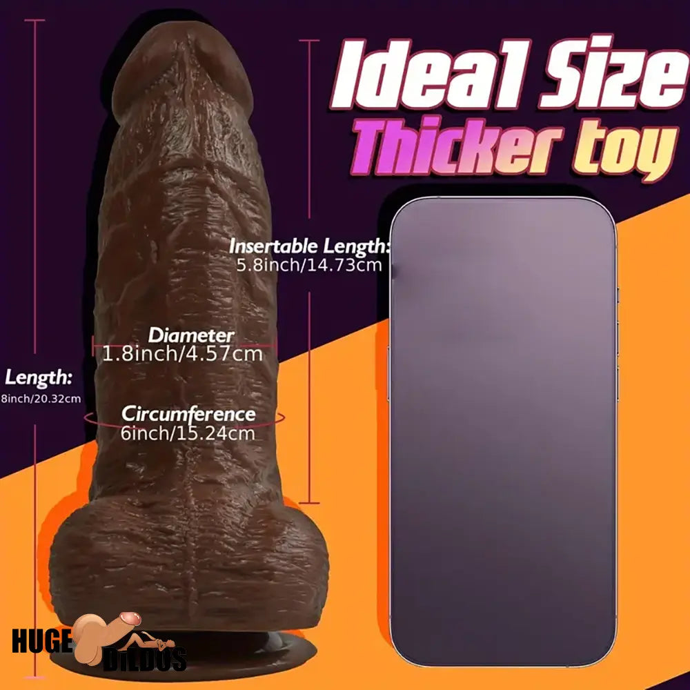 8in Big Silicone Cock Realistic Ebony Dildo BDSM Sex Toy For G Spot Clit