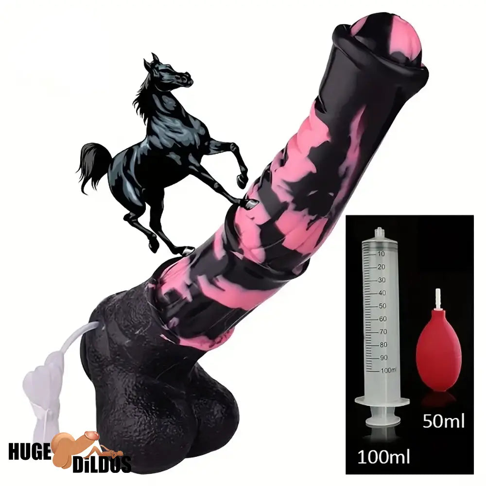 9.64in 13.77 Big Horse Animal Cock Silicone Ejaculation Dildo For Clit Play